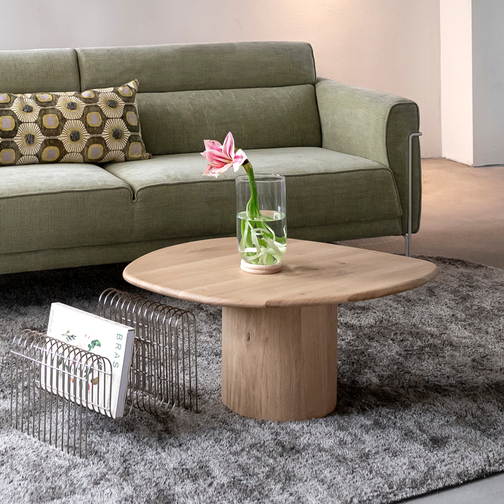 Een salontafel is onmisbaar om de zithoek compleet te maken. De Palma salontafel combineert een massief eiken blad met een modern ellipsvormig onderstel. Dankzij de organische vorm brengt Palma zachtheid en warmte in de ruimte, precies wat je nodig hebt tijdens de herfst en winter.