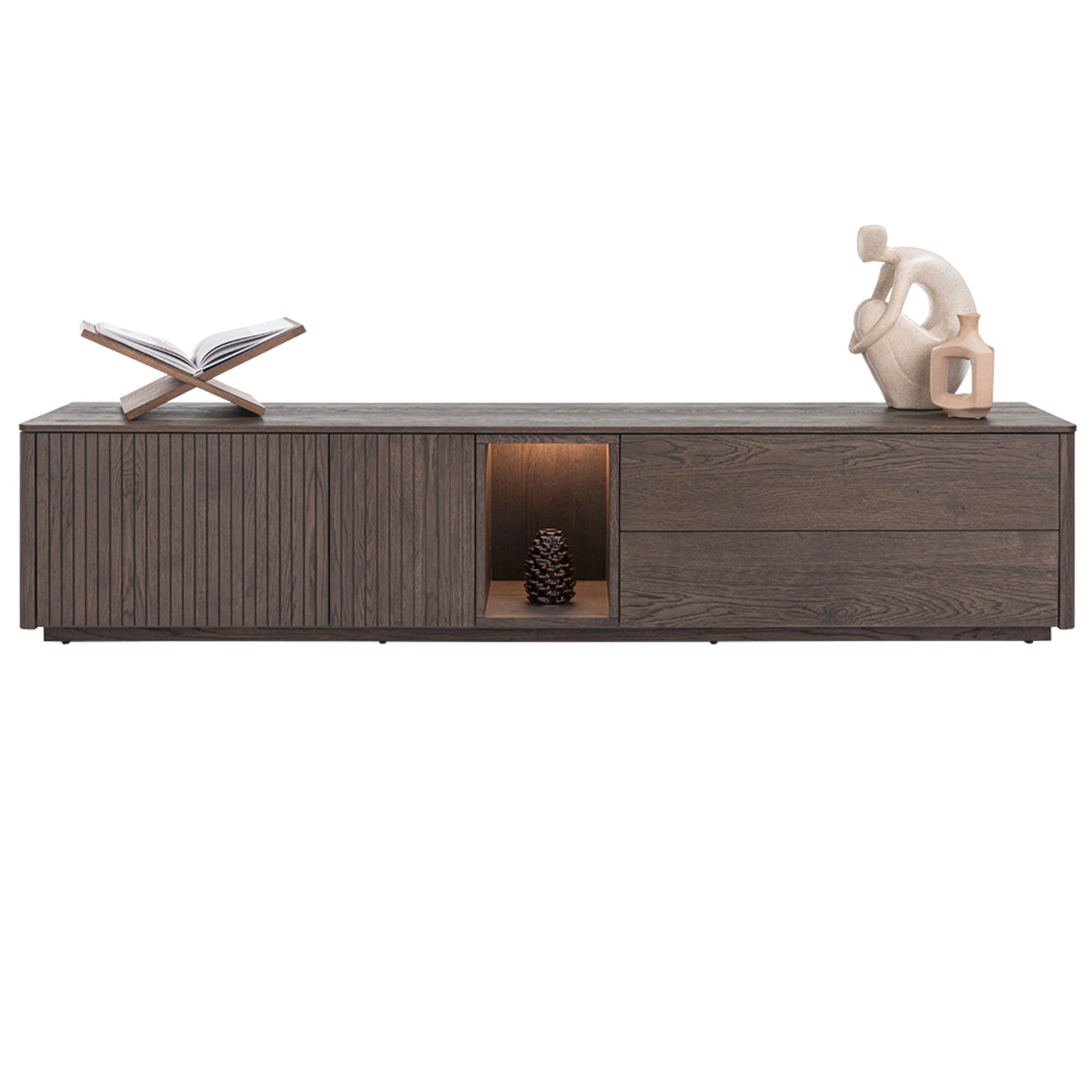 In het najaar brengen we meer avonden door voor de tv of met muziek op de achtergrond. Het Trenton lowboard van 211 cm biedt alle ruimte voor apparatuur én decoratie. Met twee deuren, twee laden en een niche combineert dit meubel functionaliteit met stijl. De warme clay-kleur past perfect bij de najaarstrends.